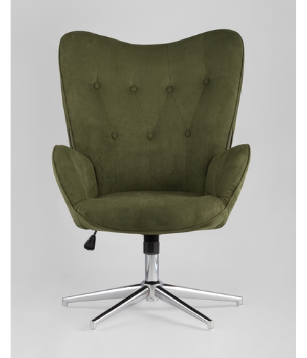 Мягкое сиденье с высокой поддерживающей спинкой анатомической формы подарит комфорт и уют. В качестве обивки используется прочная износостойкая замша с точечным декором. Металлическая ножка регулируется по высоте и обеспечивает хорошую устойчивость. Удобные подлокотники добавят комфорта. Кресло прекрасно смотрится в гостиной или столовой зоне. Высота сиденья регулируется от 45 до 55 см.