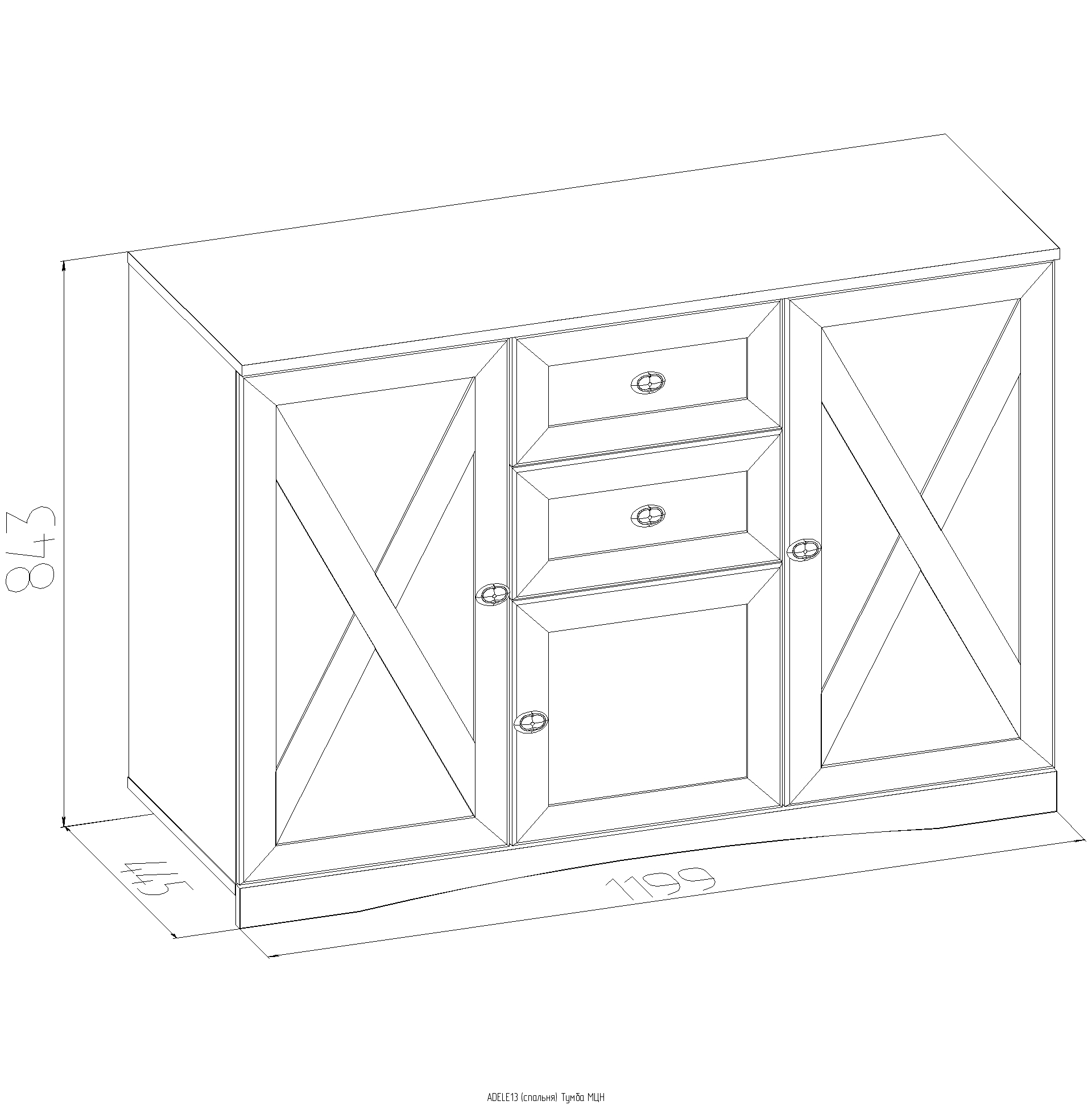 Тумба МЦН ADELE 13 — незаменимый модуль как для хранения вещей, так и для размещения телевизора в небольшом пространстве спальни. Декоративная раскладка на её фасадах и цоколь соответствуют стилю Прованс и традициям французских интерьеров.