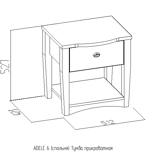 Легкость и оригинальность Тумбы прикроватной с фигурной столешницей и цоколем подчеркнута изящными скошенными опорами.