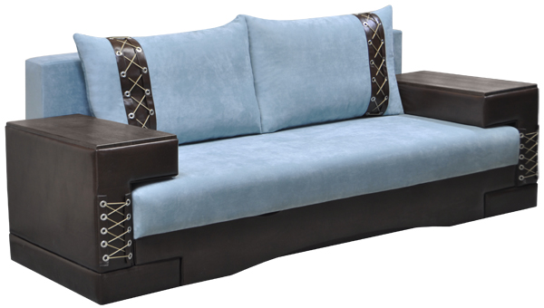 Современный стильный дизайн. Возможность использовать как центральный объект интерьера. Для трансформации требуется небольшое расстояние между стеной и диваном. Ровное спальное место. Наличие бельевого ящика. В основании спинки и сиденья деревянная рамка с латами, на которую кладется пружинный блок с настилом из термовойлока и эластичного листового пенополиуретана. Диван комплектуется приспинными подушками со съемными чехлами и декоративными элементами. П- образные подлокотники выполнены с декоративными накладками из МДФ. При раскладке дивана подлокотники необходимо откатить в сторону, для чего они оснащены роликами. Подлокотники также можно использовать в качестве передвижного столика. Механизм раскладки "Еврокнижка".
