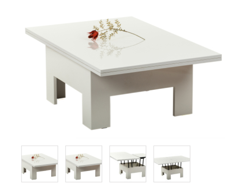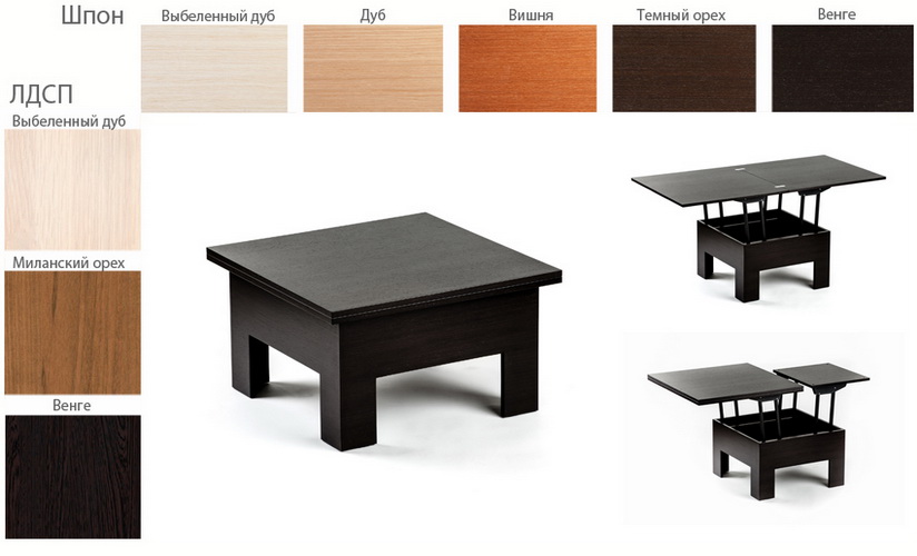 Особенностью данной модели является то, что в раскрытом положении размеры столешницы заметно больше размеров подстолья, что обеспечивает больший комфорт для сидящих за столом людей.