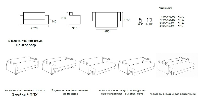 Наполнитель - независимый пружинный блок + ППУ, механизм пантограф.