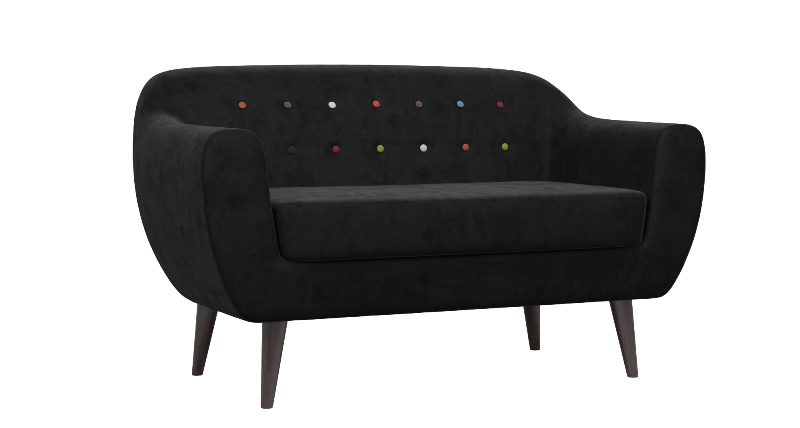 Диван-кушетка Камаро в черном велюре с цветными пуговицами