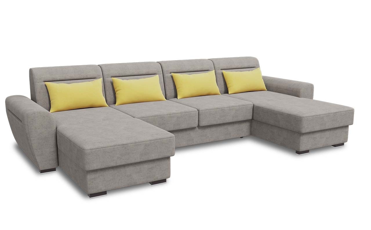 Глубокое посадочное место, дополнительные декоративные подушки под спину – создадут комфорт для всех членов семьи. Механизм трансформации «Дельфин» не требует отодвигать диван от стены, что позволит использовать его как ежедневное место для сна. В оттоманке дивана имеется дополнительное место для хранения.