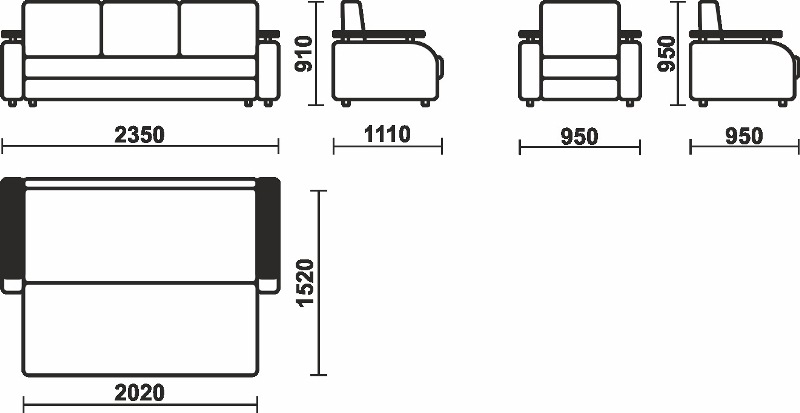 Габариты дивана: 22340*1100*950