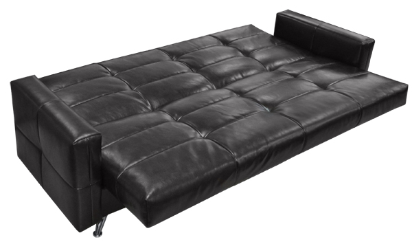 Современный строгий стиль. Чехол спального места условно съемный.Прямоугольные подлокотники. Сиденье и спинка сформированы на основе металлокаркаса с деревянными латами, на котором закреплен мягкий мат из листового пенополиуретана и соединены между собой трехпозиционным узлом трансформации. Диван комплектуется креслом и пуфом. В коробчатом основании дивана, кресла и пуфа расположены емкости для хранения спальных принадлежностей, выполненные из ЛДСП. При использования кресла совместо с пуфом образуется спальное место. Для трансформации требуется расстояния между стеной и диваном. Механизм раскладки "клик- кляк".