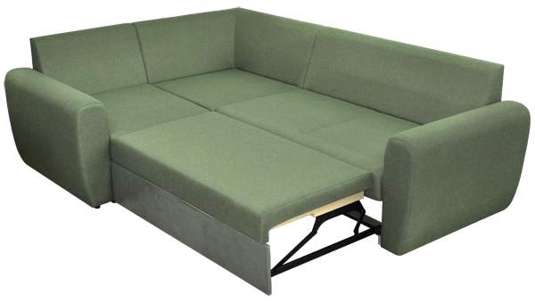 Стильный дизайн. Ровное спальное место, оснащенное механизмом трансформации "Дельфин". В основании дивана рамка с латами, на которые уложены мат из высокоэластичного ППУ. Возможность использования как центральный объект интерьера при условии дополнительного заказа задников из обивочной ткани. При трансформации, диван находится вплотную к стене, раскладка производится в переднем направлении.  В коробчатом основании полукресла дивана  расположена емкость для хранения спальных принадлежностей. Диван комплектуется съемными приспинными подушками, наполнителем которых является синтетический пух.