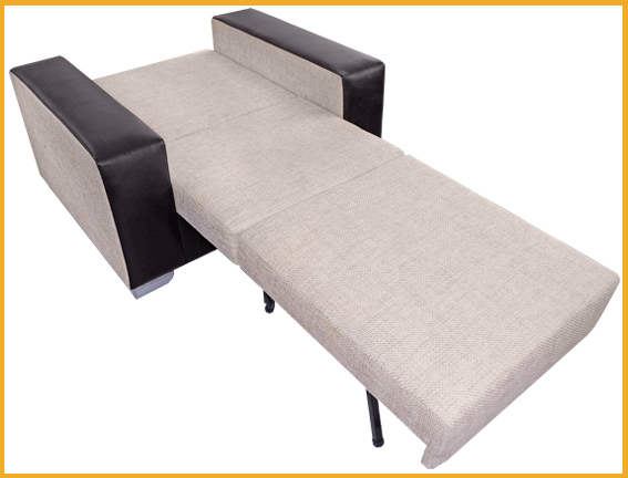 Современный молодежный стиль. При трансформации требуется небольшое расстояние между стеной и спинкой кресла- кровати. В разложенном виде получается ровное односпальное место. В основании спинки и сиденья деревянная рамка, на которую кладется эластичный пенополиуретан. Кресло- кровать комплектуется съемной приспинной подушкой из формованного пенополиуретана. Механизм раскладки"Юниор". Чехол у подушки съемный.