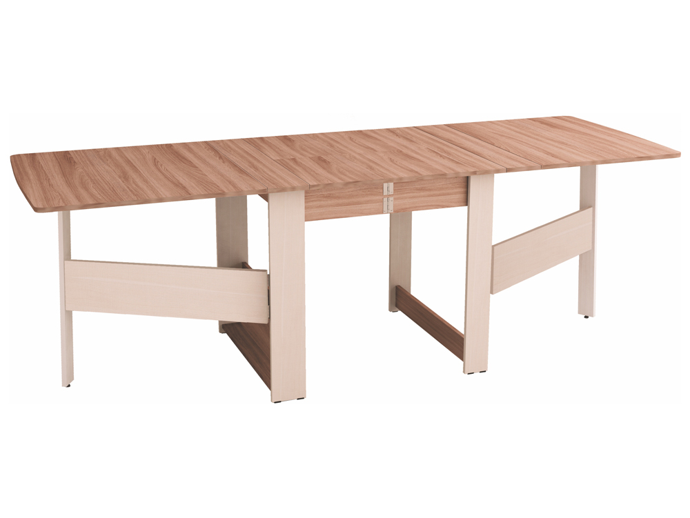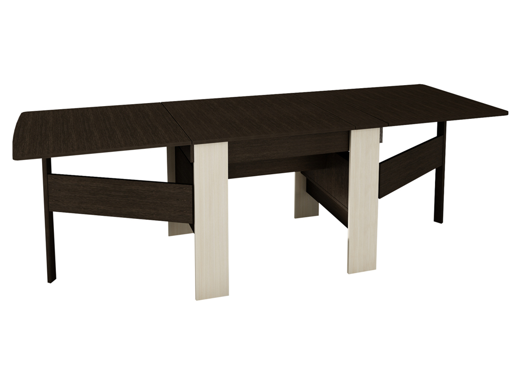 Колибри 12.1» – это многофункциональная модель с тремя типами разложения – тумба (всего 29 см) увеличивается до 8 мест (1 м 71 см) и с помощью вставок превращается в очень большой обеденный стол на 12 мест (2 м 31 см). Внутри стола предусмотрено специальное место для хранения двух вставок.