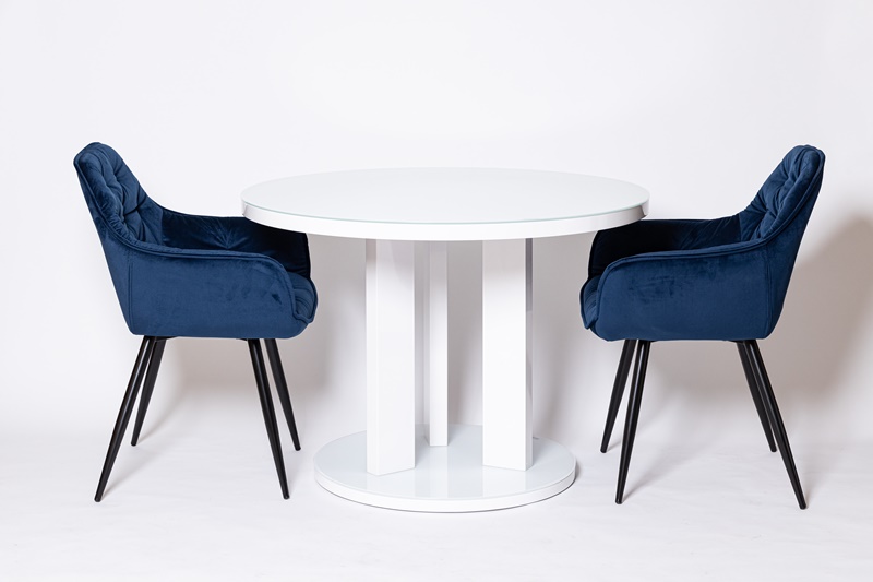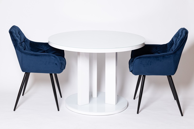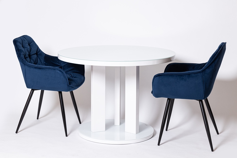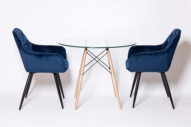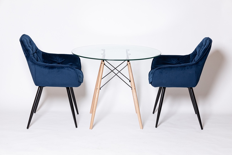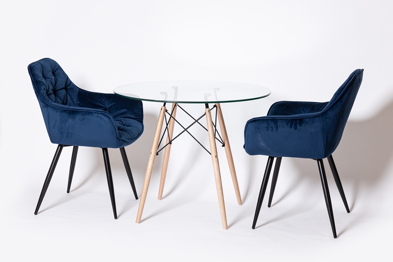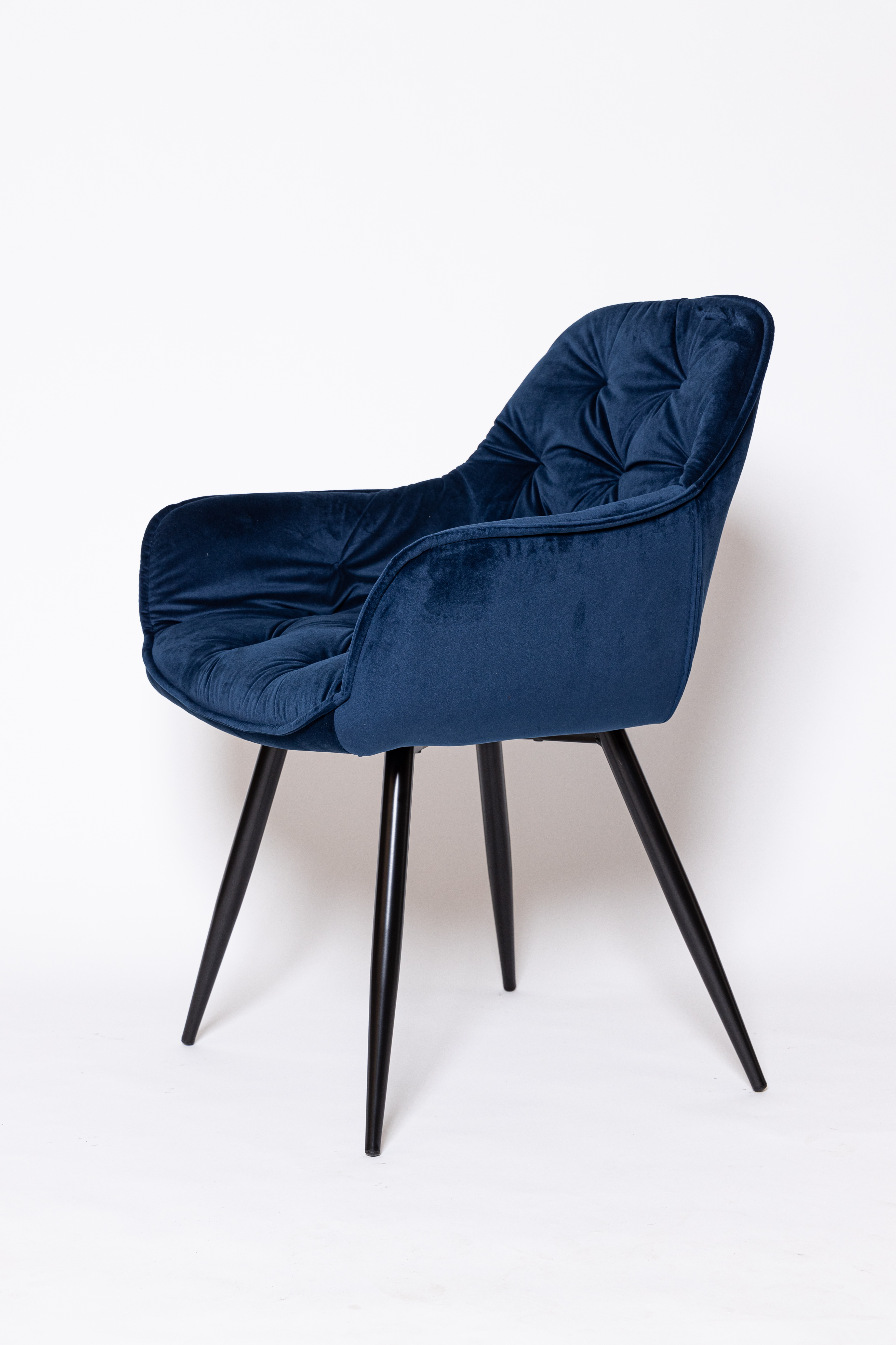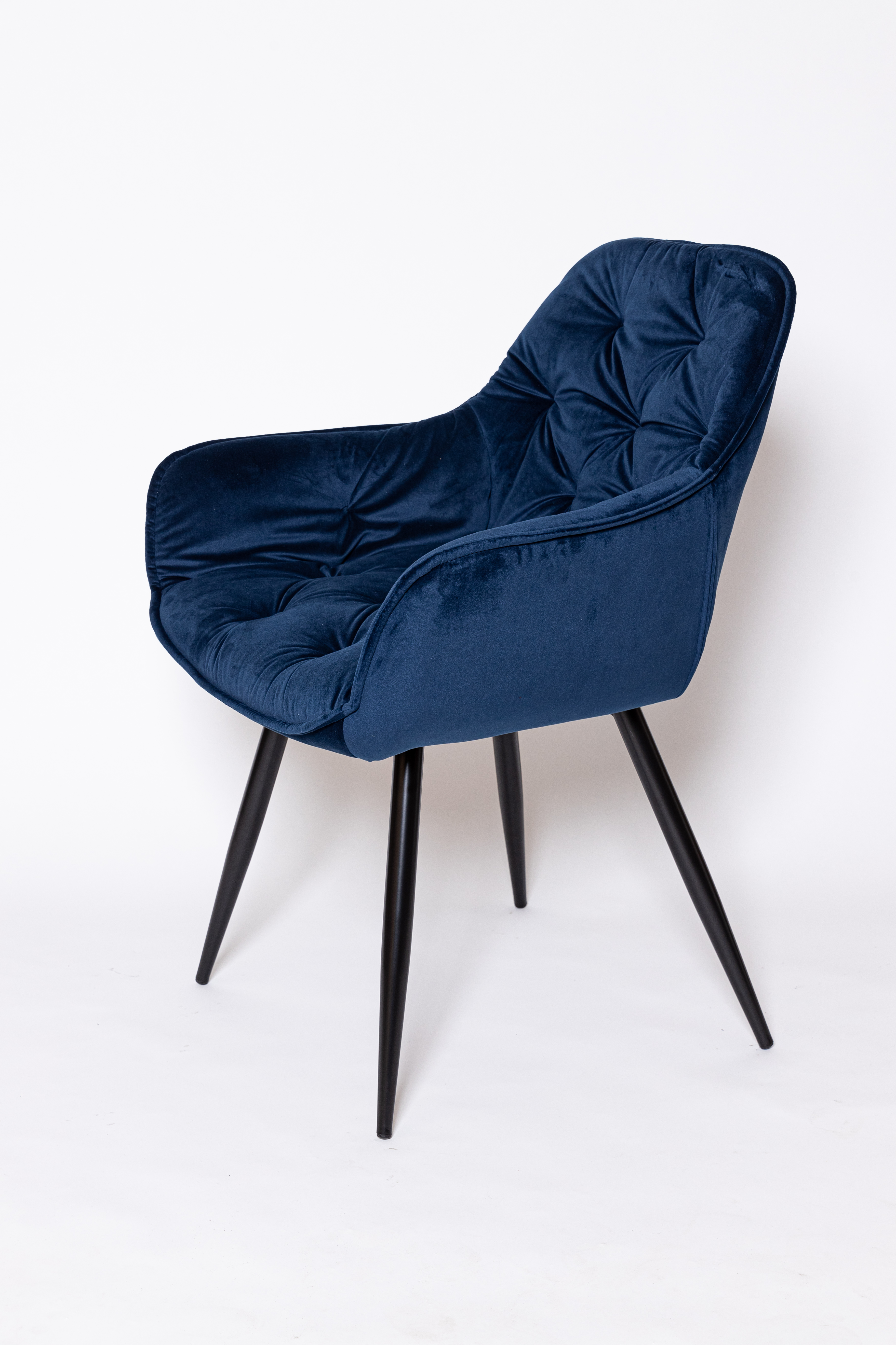 Восхитительное кресло синем цвете, с каретной стяжкой и удобной посадкой.