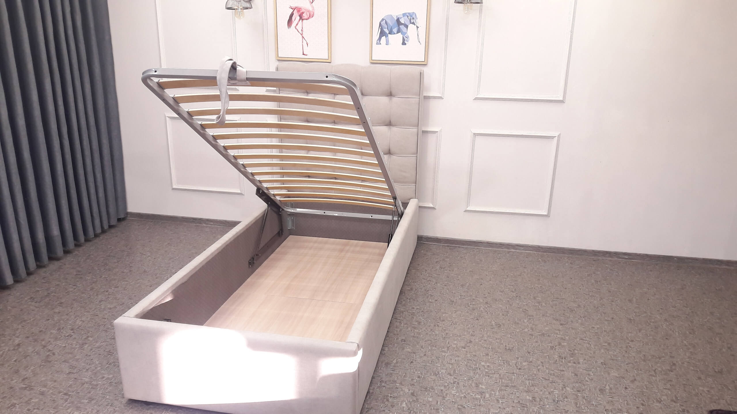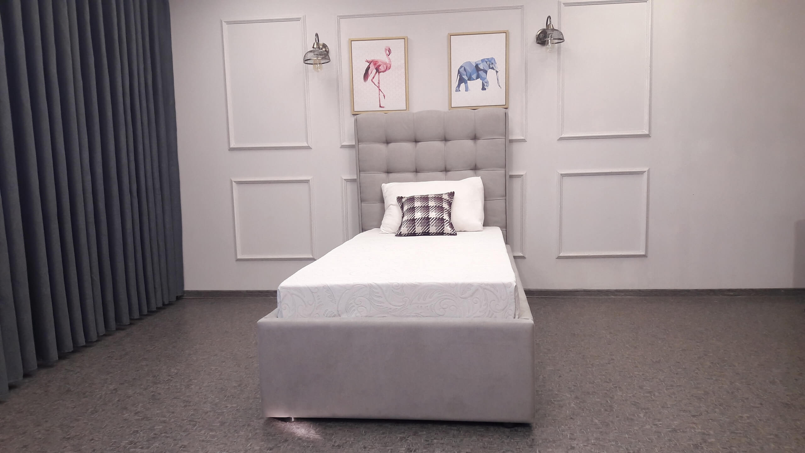 Прекрасная кроватка, с очень объемным и воздушным мягким изголовьем)