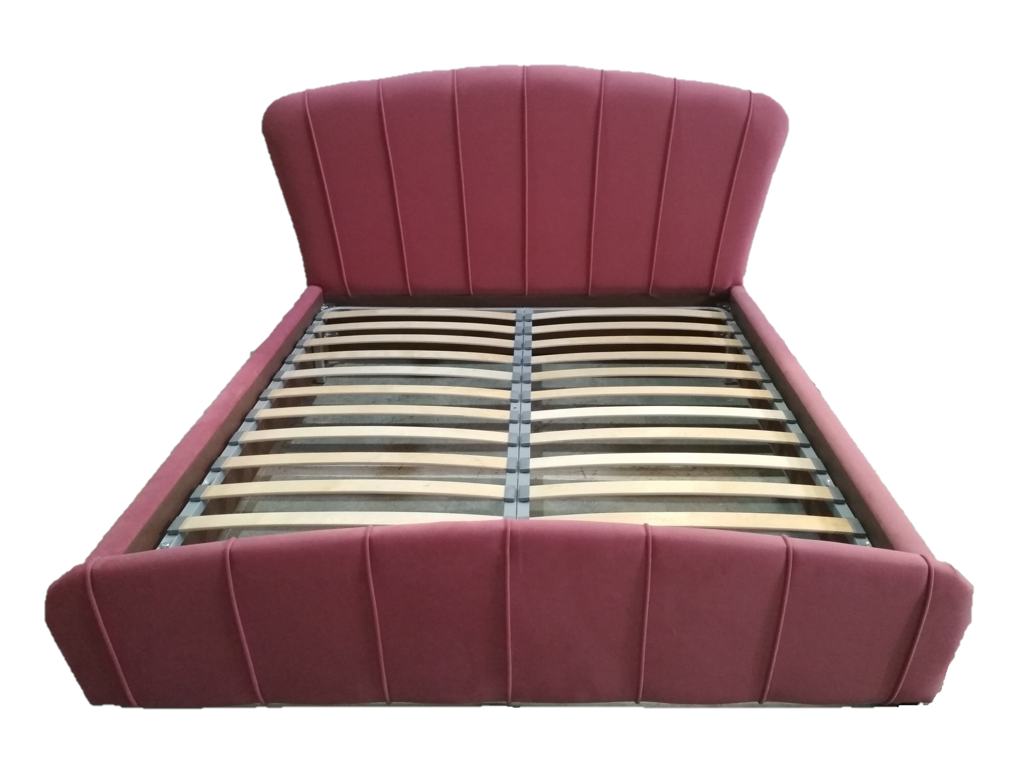 Особенности: Кровать установлена на пластиковые опоры h=25мм. Высота изголовья 1150 мм, изголовье полукруглое с прошивкой - кант.