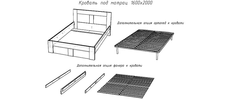 -Кровать предназначена для использования как с ортопедическим основанием так и с ламелями(фанера). (ОРТОПЕДИЧЕСКОЕ ОСНОВАНИЕ  НЕ ВХОДИТ В КОМПЛЕКТ)
