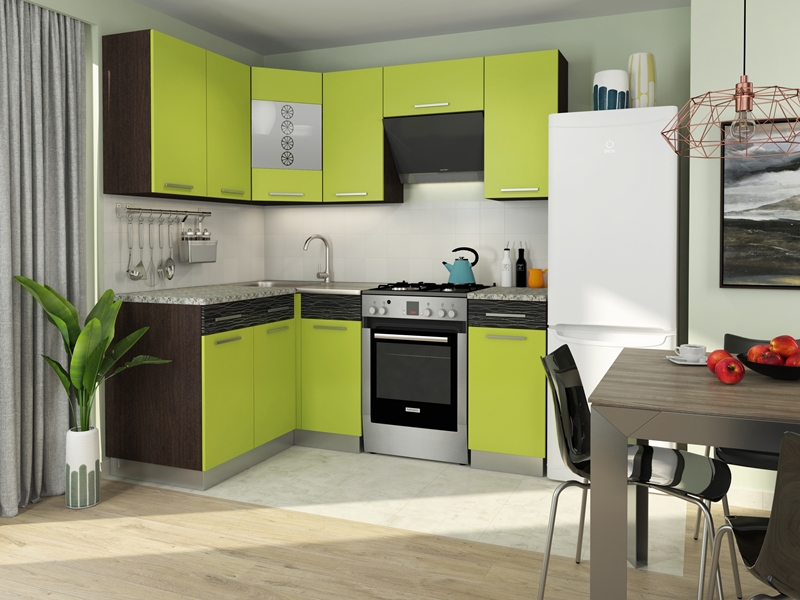 Кухонный гарнитур Алиса-11 угловая Венге/Лайм