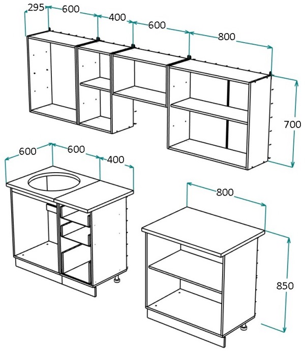 Есть все необходимые отверстия под петли, ручки. Фурнитура входит в комплект (ручки, ножки, петли, элементы крепления.