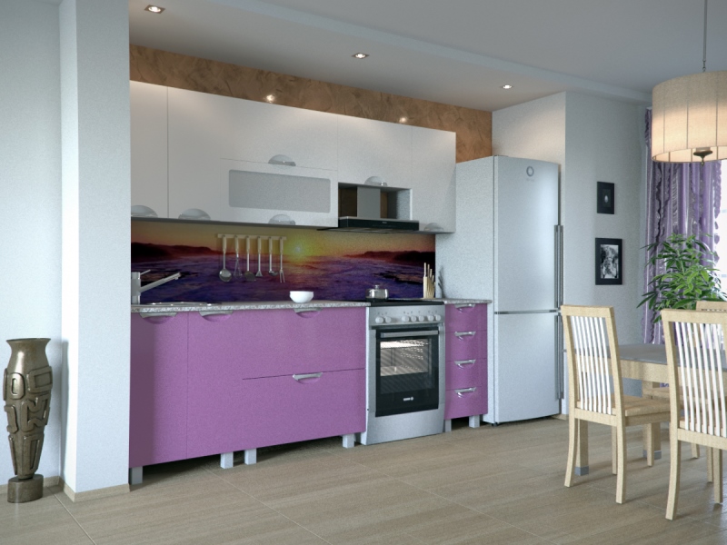 Кухонный гарнитур Мадена Бело-фиолетовый глянец