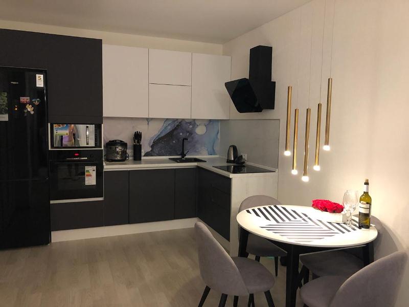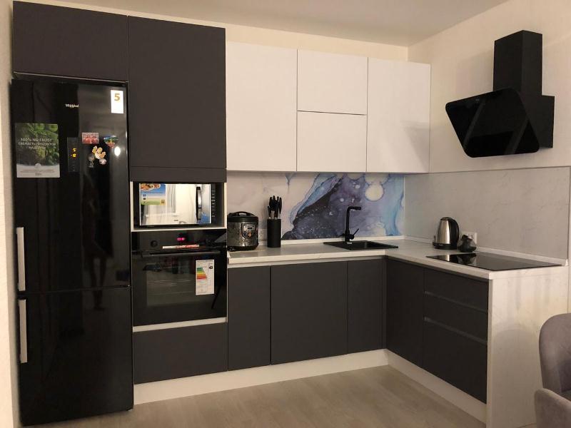 Цвет корпуса, фасада, столешницы, стекла, ручки могут быть практически любыми, цена при этом не поменяется. Кухня может быть оснащена доводчиками (Blum, Boyard).
