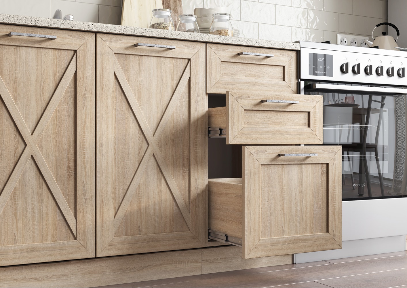 Фасады выполнены из качественного МДФ, корпус ЛДСП.
