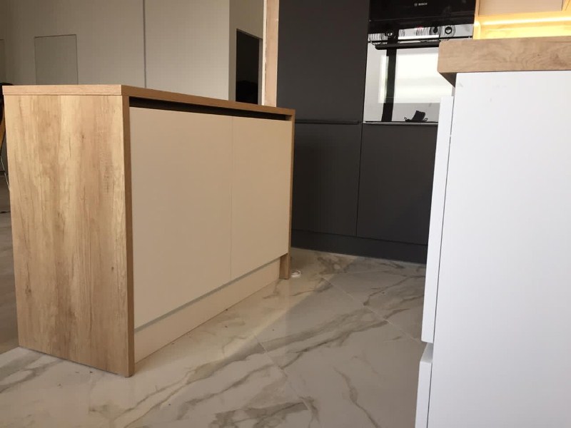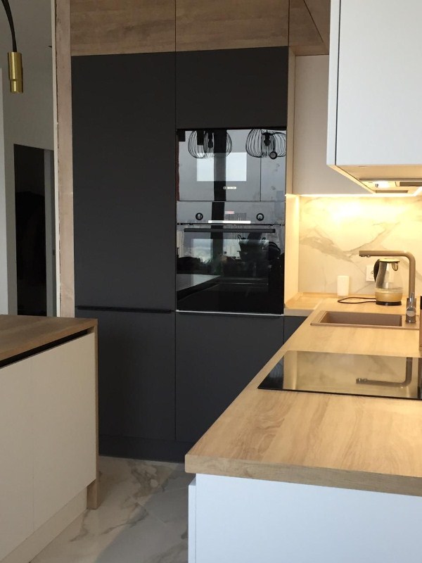 В стоимости: корпус, фасады, столешница, ручки Schuko черный+ручка торцевая Boyard