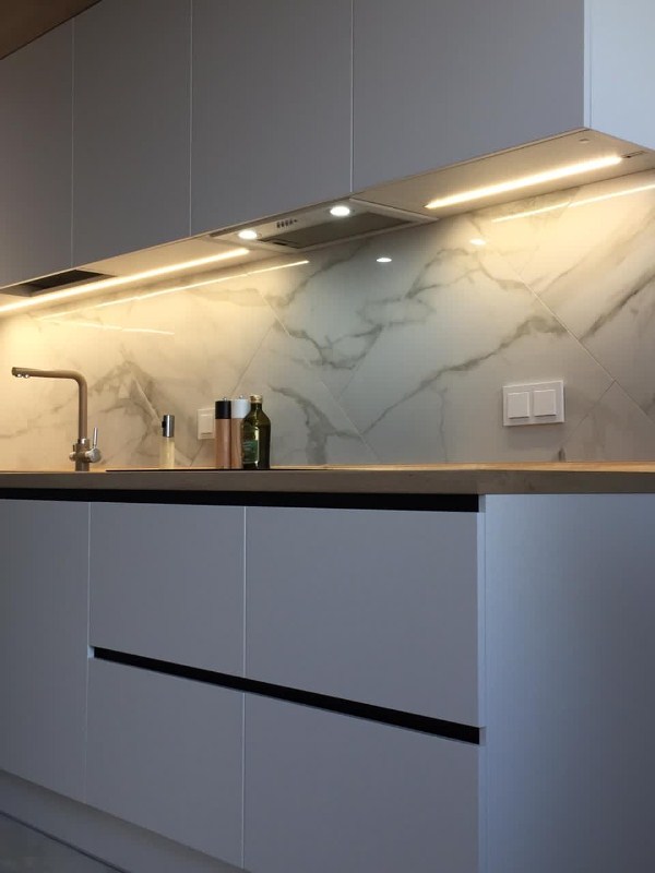 Цвет корпуса, фасада, столешницы, стекла, ручки могут быть практически любыми, цена при этом не поменяется. Кухня может быть оснащена доводчиками (Blum, Boyard).
