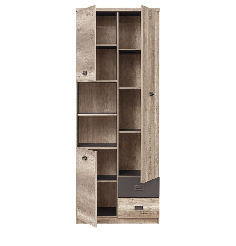Многофункциональный, комбинированный шкаф: множество ниш за распашными дверями, выдвижные ящики на металлических роликовых направляющих.
