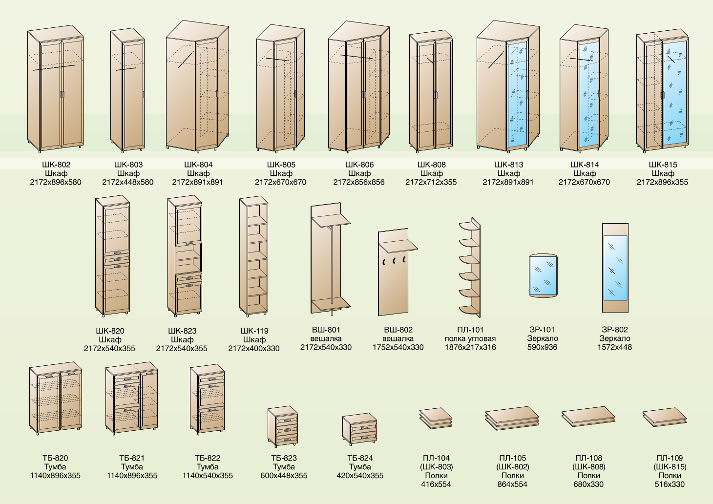 Состав композиций по секциям на главном фото: ШК-815, ВШ-802, ТБ-824, ТБ-822.