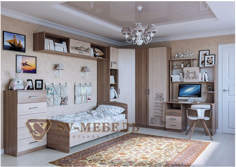 Детская серия "Город" - идеальное решение для детской комнаты, созданная больше для подростков. Выполнена в приятных спокойных тонах. Изюминкой этой серии являются интересные элементы с фотопечатью.  Данная модель выделяется огромным функционалом - множество выдвижных ящиков, пенал, комод, угловой шкаф, компьютерный стол. Это очень стильная и современная модель. И самое главное - Вы сможете самостоятельно подобрать варианты модулей, которые идеально впишутся в интерьер детской комнаты!