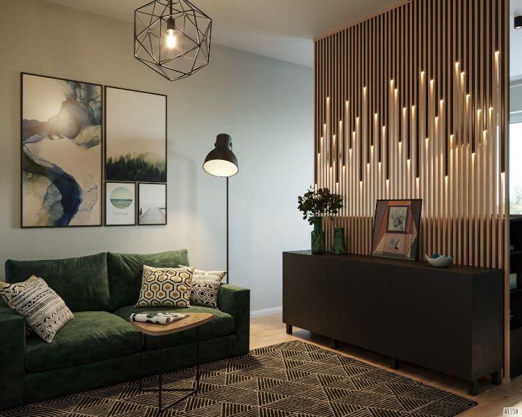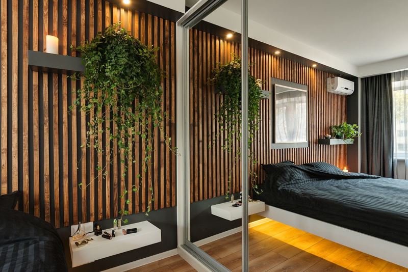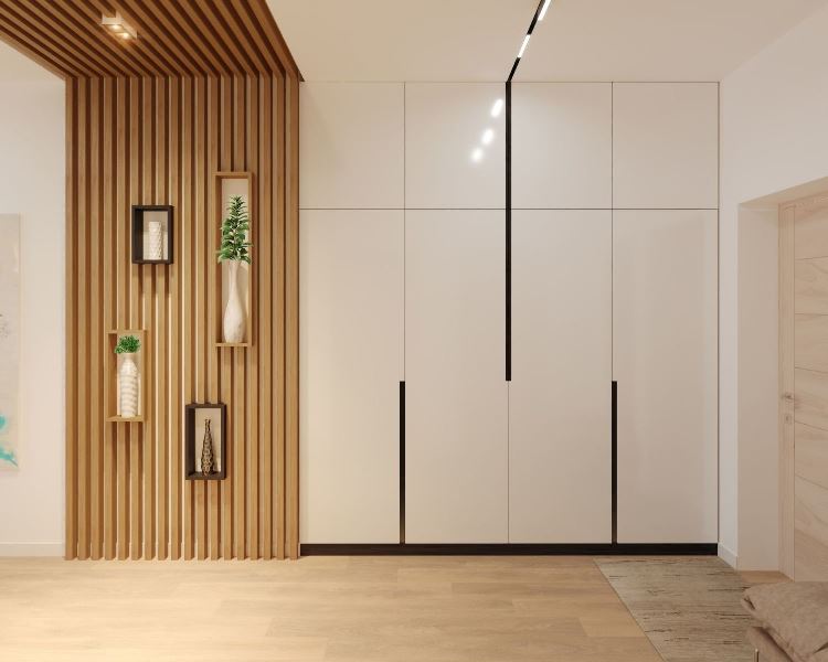 Такие рейки могут быть изготовлены из ЛДСП, МДФ с покраской, массива, шпона.