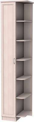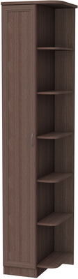 Узкая, но очень практичная и вместительная модель шкафа, которую можно использовать как в доме, квартире, так и в гостинице, офисе. Шкаф представляет собой комбинацию открытых угловых полок с закрытой секцией, в которой можно хранить документы, бумаги или вещи.