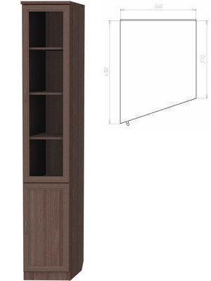 Шкаф разделен на две отдельные части. Верхняя часть предназначается для хранения книг. Дверь верней части состоит из стекла, а книги за стеклянной дверкой смотрятся очень элегантно. Верхняя часть обладает четырьмя полочками, одинаковыми по площади, равноудаленными одна от одной. На полках можно поместить большое количество книг, весьма удобным является то, что полочки достаточно велики для хранения не только обычных по размеру книг, но и больших печатных изданий.