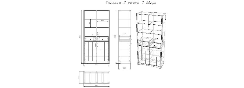 Стеллаж 2 ящ 2 двери ЛОФТ