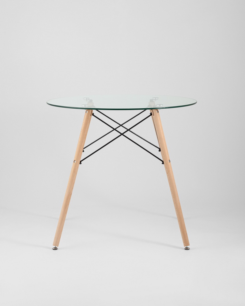 Стеклянный стол Джеймс 80 с круглой столешницей диаметром 80 см. Деревянные ножки изготовлены из массива бука - крепкие и устойчивые.