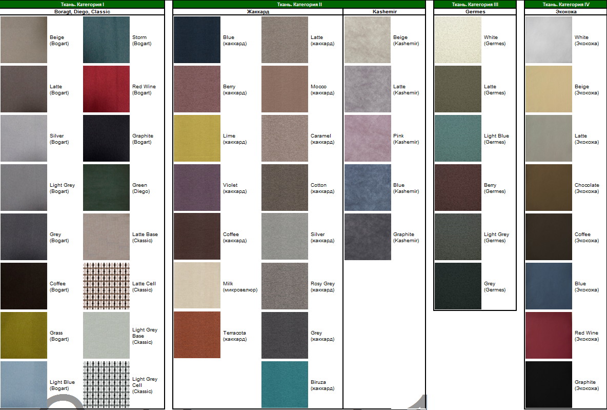 Изготавливаются во второй категории обивки.