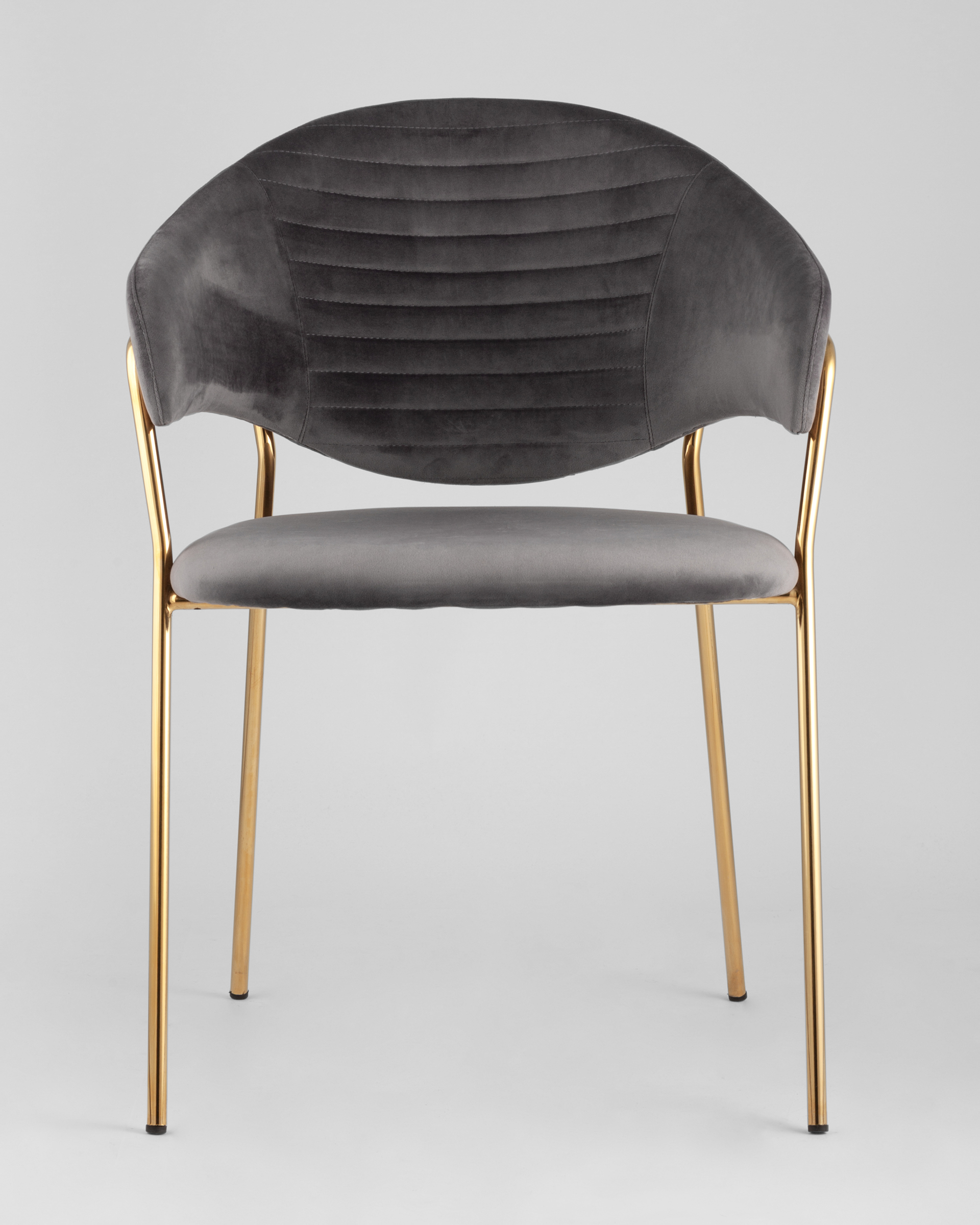 Стильный стул Эдита с оригинальной формой спинки, высокой поддержкой и подлокотниками. В качестве обивки используется мягкий вельвет. Металлический каркас золотого цвета огибает спинку и выступает аккуратным акцентом модели. Широкое сиденье обеспечивает удобную посадку и уют.