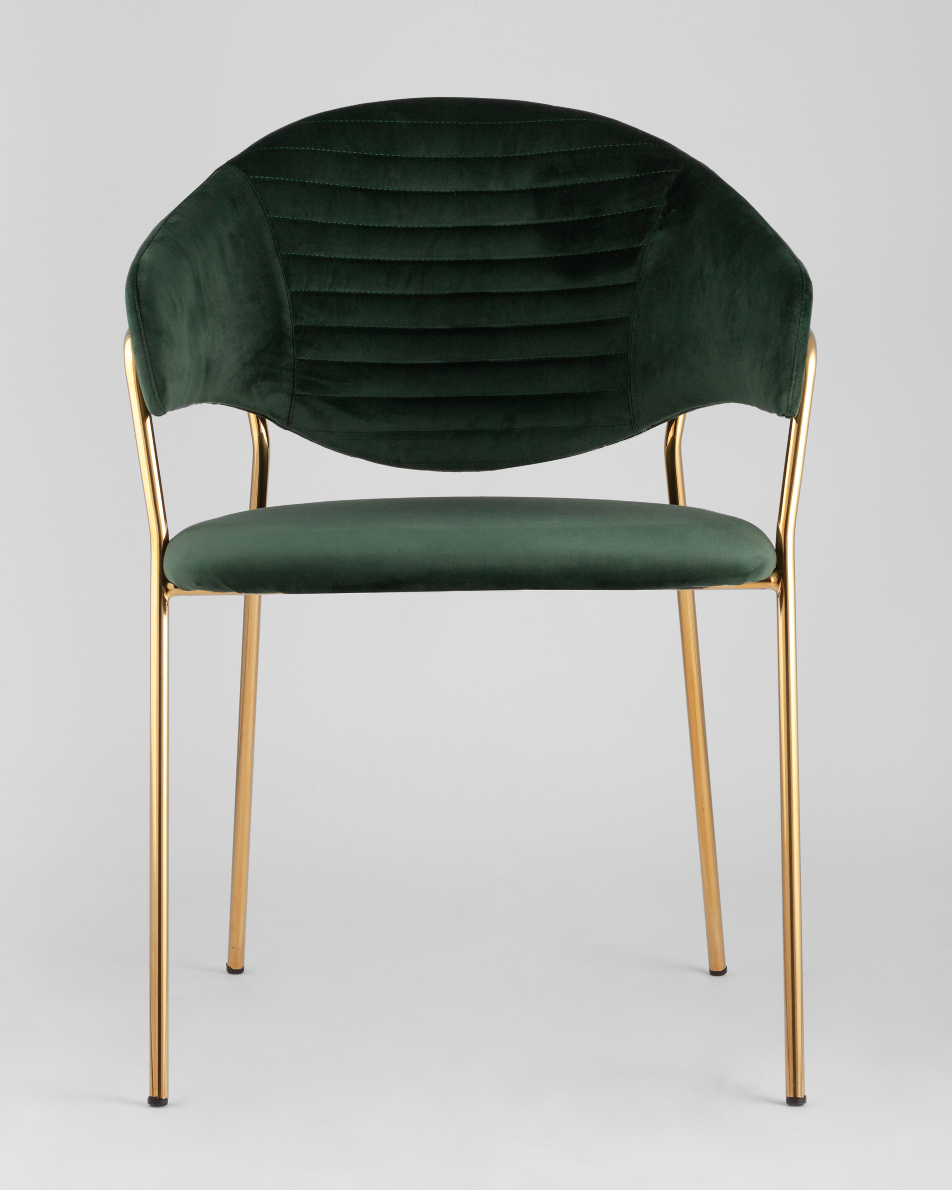 Стильный стул Эдита с оригинальной формой спинки, высокой поддержкой и подлокотниками. В качестве обивки используется мягкий вельвет. Металлический каркас золотого цвета огибает спинку и выступает аккуратным акцентом модели. Широкое сиденье обеспечивает удобную посадку и уют.
