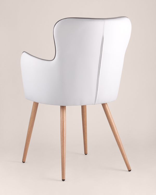 Стильный и мягкий стул Космея имеет широкую эргономичную спинку и удобные подлокотники. Обивкой послужила высококачественная PU кожа. Ножки стальные с принтом под дерево.