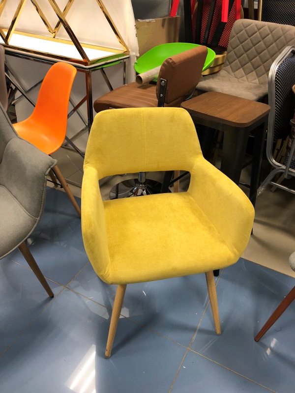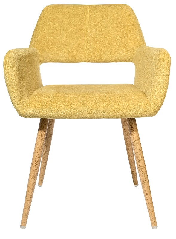 Стильный и мягкий стул имеет широкую эргономичную спинку и удобные подлокотники. Обивкой послужила высококачественная плотная ткань. Ножки стальные с принтом под дерево.