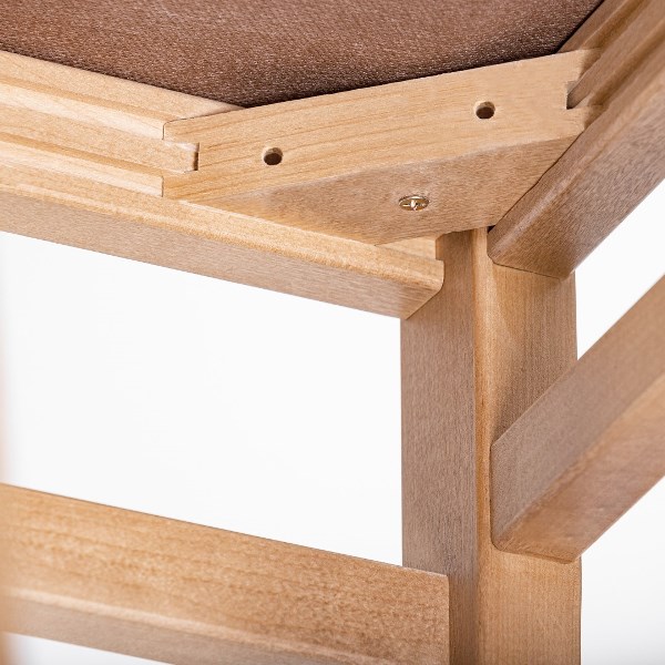 Высота изделия в 950 мм обеспечивает комфортную и удобную посадку даже для людей с высоким ростом.  Соединение деталей по типу «шип-паз» и усиленное уголками  сиденье сохраняют диагональную прочность конструкции при больших и нестандартных нагрузках.