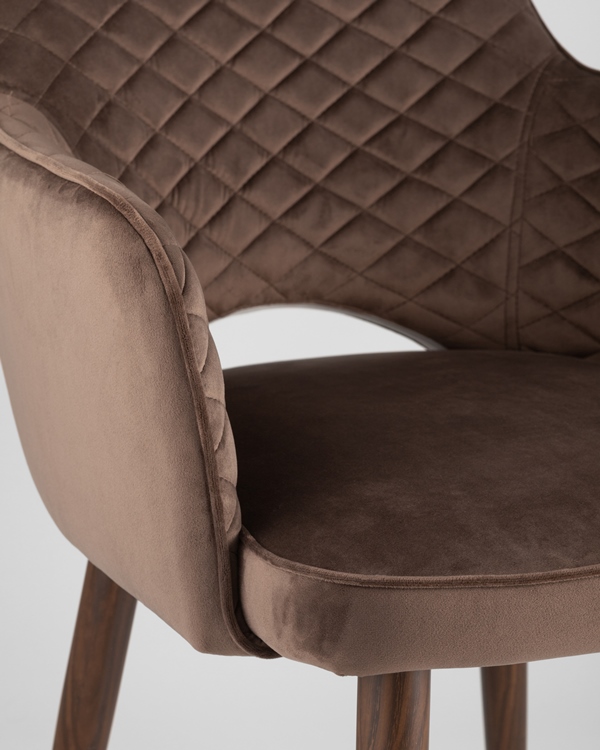 Стул Винсент коричневый с мягкой вельветовой обивкой и удобной спинкой.