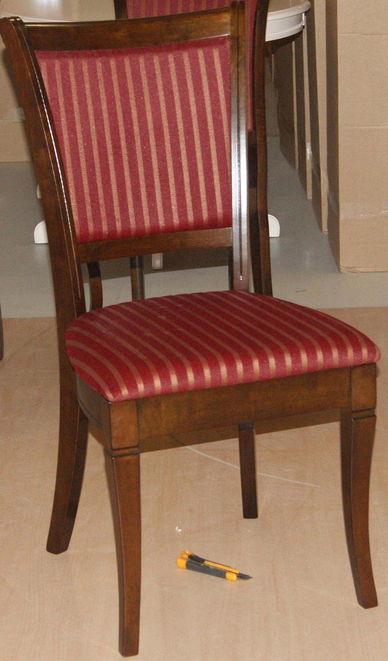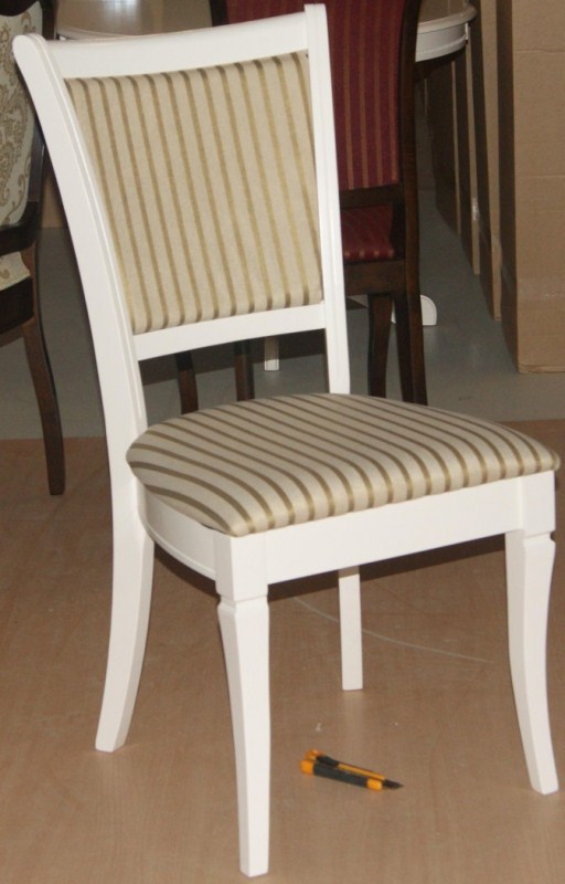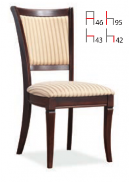 Грациозный и изящный из массива натурального дерева. Обивка — ткань повышенной прочности, поролон. Цветовое исполнение: тон Butter white/ ткань полоса беж, тон Tobacco/ ткань полоса бордо.