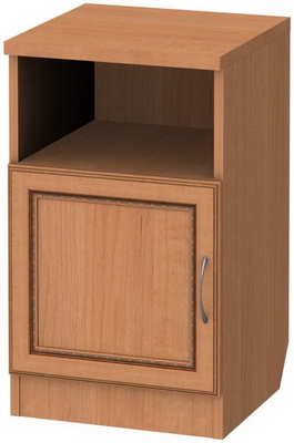Идеальным вариантом, который подойдет как для больших помещений, так и для малогабаритных квартир, станет тумба с дверцей. Она изготовлена в традиционном дизайне, который предусматривает наличие довольно вместительного пространства: нижняя часть, закрывающаяся дверцей, подойдет для хранения каких-либо вещей, коробок, относительно небольших предметов, которые можно аккуратно сложить вовнутрь, а верхняя открытая часть – для блокнотов, ручек, ключей и пр.