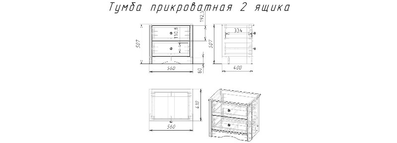 Тумба прикроватная 2 ящика ЛОФТ