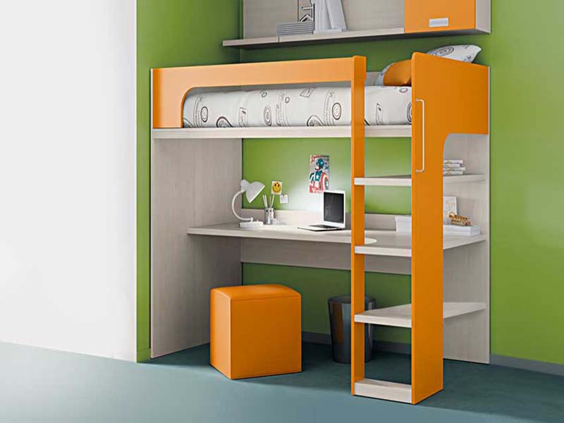 Модель с кроватью и столом обеспечивает экономию места в комнате.