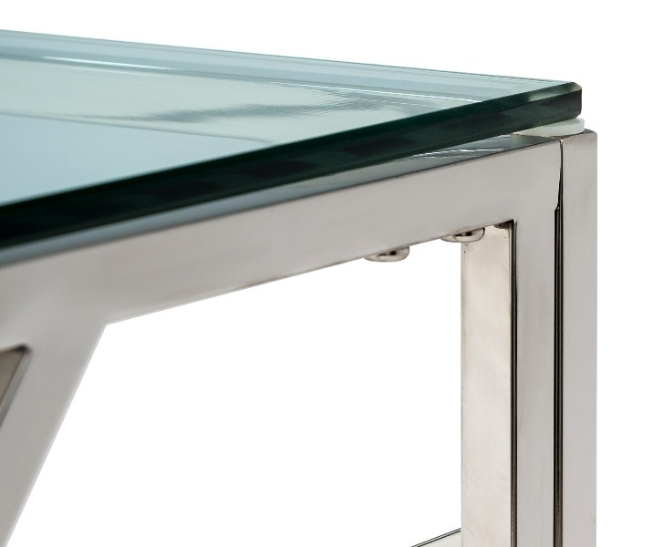 Журнальный столик  АРТ ДЕКО, прозрачное стекло, сталь серебро.